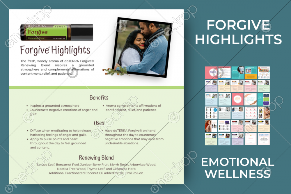 This graphic is part of the Emotional Wellness Collection with the Done-For-You-Copy. The topics include mood & oils, AromaTouch® Technique, and highlights of the Kid’s Collection and Emotional Aromatherapy® Kit essential oils. (The Done-For-You-Copy is downloaded separately). All the graphics for the collection are below!