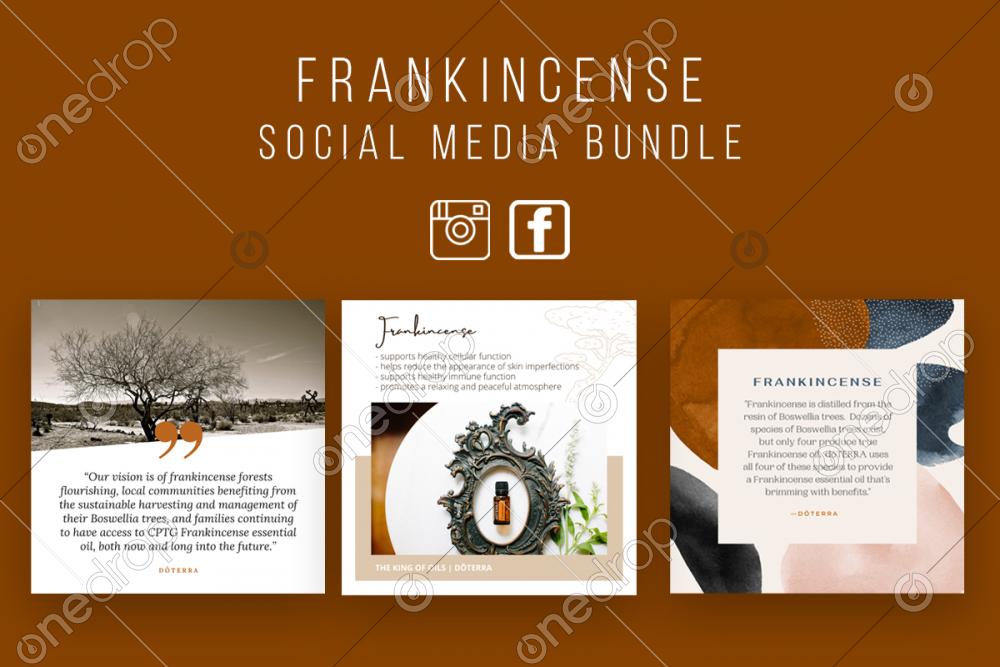 A series of square social media posts highlighting the benefits of Frankincense as well as doTERRA's commitment to ethical and sustainable sourcing practices, which sets doTERRA's Frankincense apart.
