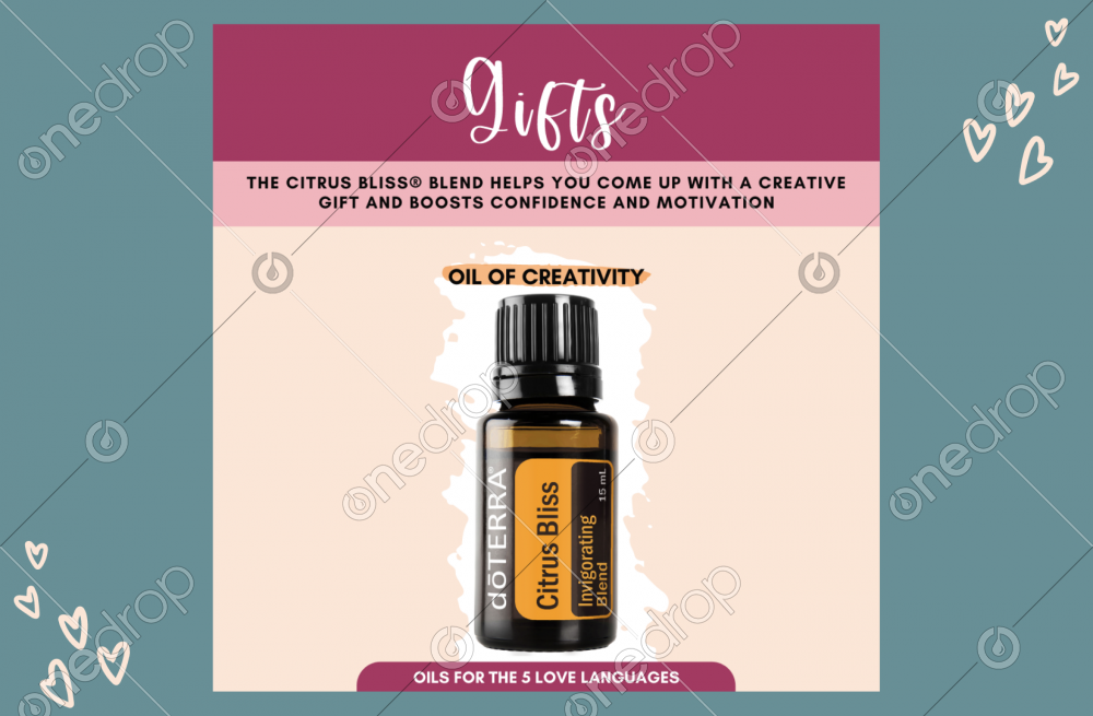 Highlight Citrus Bliss, the Oil of Creativity for those with the love language of Gifts. Click HERE for entire February Themed Collection: Suggested photo uses: Social media posts Instagram stories Pinterest pins Blog post images E-book images Number of photos: 1 Photo orientation: Square Please be sure to watermark before sharing & follow my contributor page for more! Thank you so much! If you have feedback about this graphic, or any requests to modify it feel free to click on the flag above. If you would like a direct response, please include your name and email. Otherwise, your feedback is anonymous and I'm unable to reply directly to you. Thanks for your support and the opportunity to help you grow your business!!