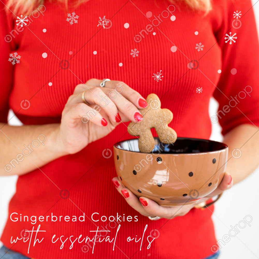 Graphic and picture to share a recipe of Gingerbread cookies made with essential oils.