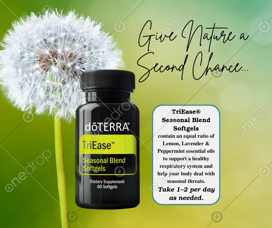 🌿 Embrace the beauty of each season with a little help from Mother Nature herself! 🌼 Give her a second chance to dazzle you with TriEase® Seasonal Blend Softgels – the perfect blend of Lemon, Lavender, and Peppermint essential oils! 🍋💜 Take 1–2 per day, and let your body dance through the changing seasons with ease! 🌈 #NatureLove #TriEaseMagic #EmbraceChange 🌸🍃