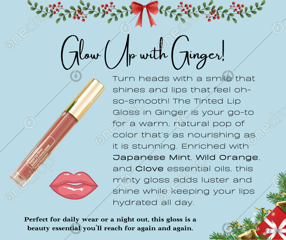 Turn heads with a smile that shines and lips that feel oh-so-smooth! The Tinted Lip Gloss in Ginger is your go-to for a warm, natural pop of color that’s as nourishing as it is stunning. Enriched with Japanese Mint, Wild Orange, and Clove essential oils, this minty gloss adds luster and shine while keeping your lips hydrated all day.