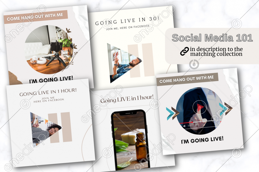 Make a post on your social pages that you will be "Going Live". Variety of images to fit your style or to rotate.