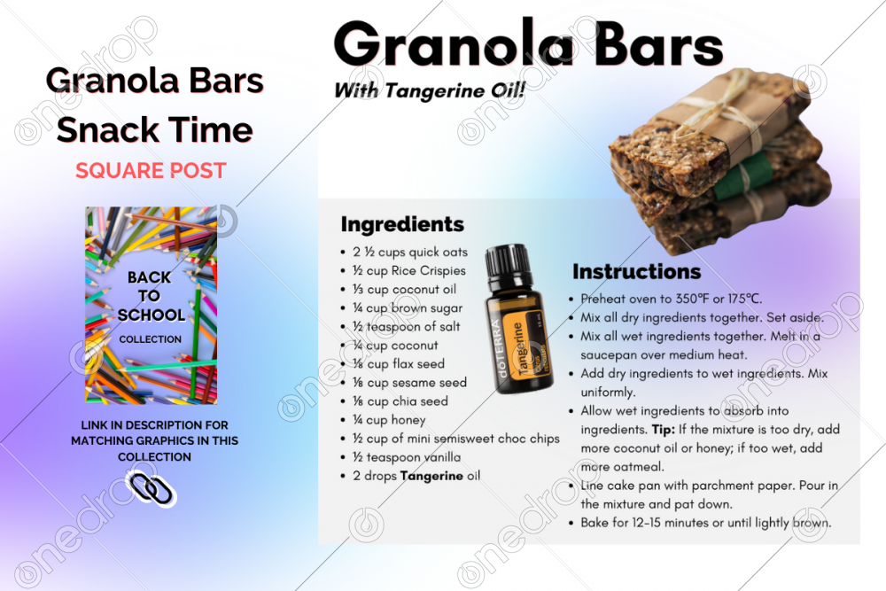 Perfect for an after school snack or an on-the-go treat, granola bars are the ultimate pack and go option. This recipe features dōTERRA's Tangerine essential oil.