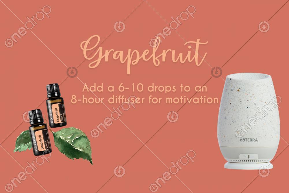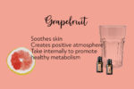 The uses and benefits of grapefruit essential oil are supported with two social media posts. One includes a diffuser blend.