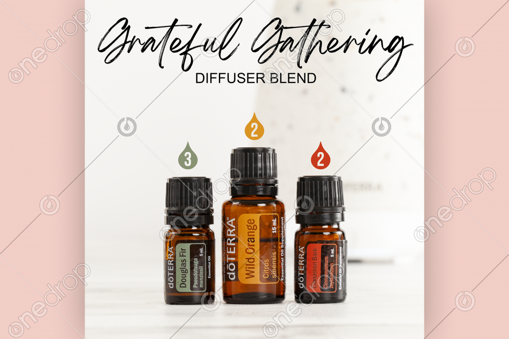 High resolution square picture of the Grateful Gathering diffuser blend featuring Douglas Fir + Wild Orange + Cinnamon.