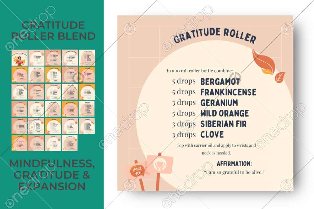 This graphic is part of the Mindfulness, Gratitude, and Expansion Collection. The Collection highlights each topic including daily roller or diffuser blends and affirmations. (The Done-For-You-Copy is downloaded separately). All the graphics for the collection are below!