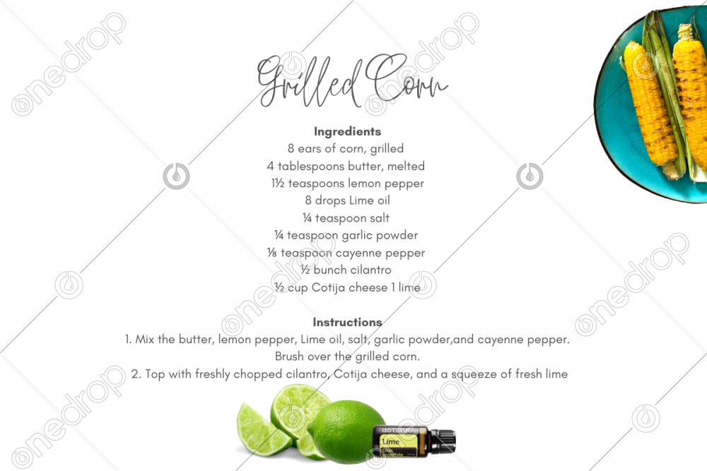 1. Mix the butter, lemon pepper, Lime oil, salt, garlic powder,and cayenne pepper. Brush over the grilled corn.
