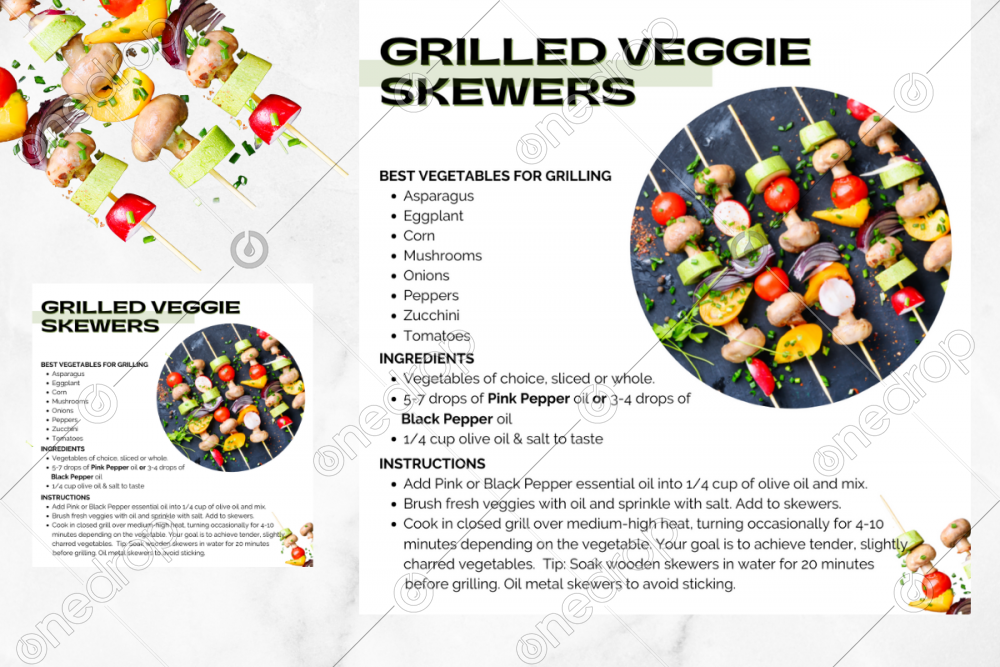 Whether you’re trying to make your family BBQ a little healthier, or you just need some variety in your menu, these Grilled Veggie Skewers with Pink Pepper or Black Pepper essential oil are just the ticket. The best part of this recipe is choosing your favorite vegetables and then mixing and matching to make the ultimate skewer combination!