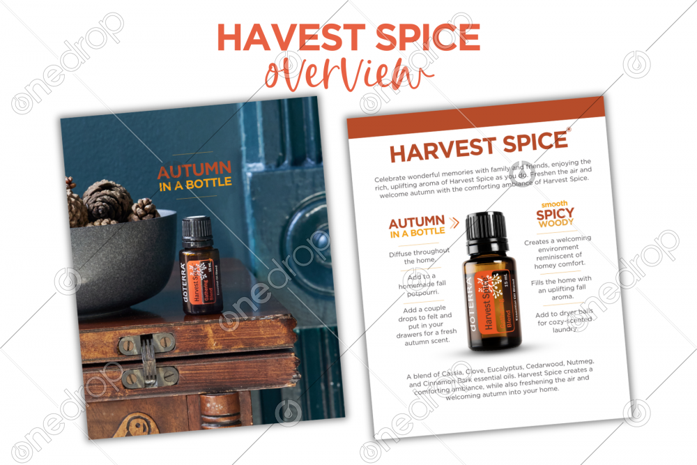 Celebrate wonderful memories with family and friends, enjoying the rich, uplifting aroma of Harvest Spice as you do. Freshen the air and welcome autumn with the comforting ambiance of CPTG Certified Pure Tested Grade® Cassia, Clove, Eucalyptus, Cedarwood, Nutmeg, and Cinnamon Bark essential oils.