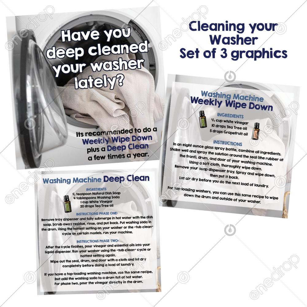 Have you deep cleaned your washer lately? - Set of 3 graphics includes general one, instructions for weekly wipe down, and instructions for deep clean.