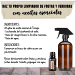 Imagen en formato cuadrado para Post de Instagram / Facebook con la Receta para Hacer tu Propio Limpiador de Frutas y Verduras Natural con Aceites Esenciales.