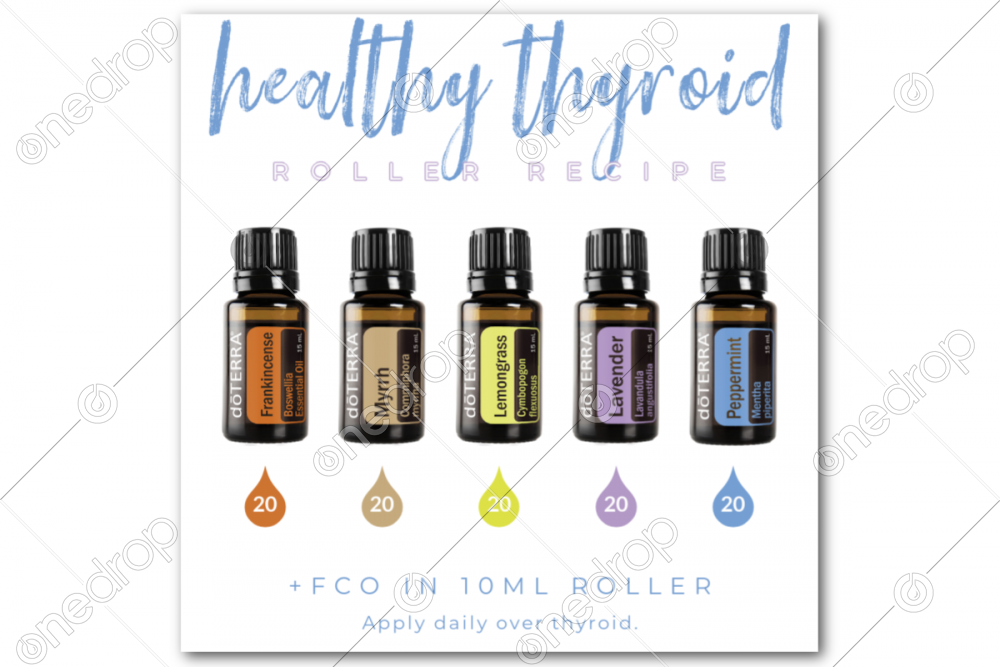 Use this Healthy Thyroid roller blend to support your thyroid as an important part of the endocrine system. It includes: Frankincense, Myrrh, Lemongrass, Lavender, and Peppermint. Apply daily over the thyroid.