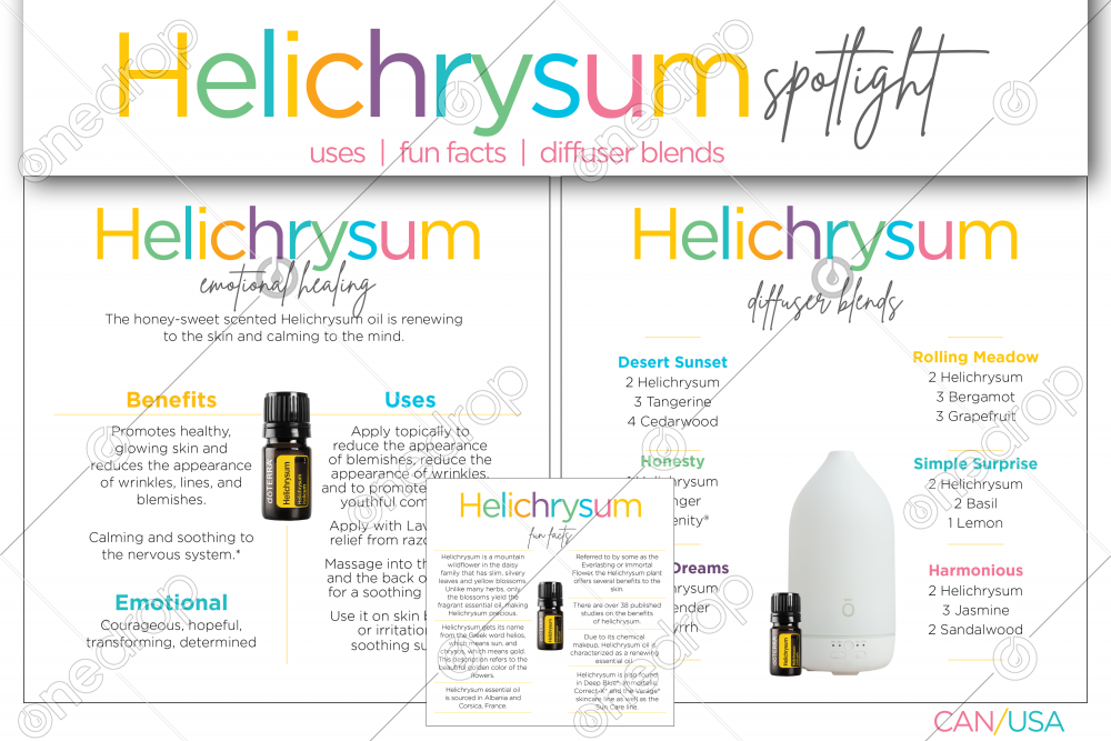 Referred to by some as the Everlasting or Immortal Flower, the Helichrysum plant offers several benefits to the skin. With rejuvenating and restorative properties, doTERRA Helichrysum oil has many uses, including reducing the appearance of blemishes and wrinkles, providing a soothing sensation for the skin, and promoting a healthy metabolism.* Often used in anti-aging products, Helichrysum oil is best known for the endless applications it holds for improving the skin.