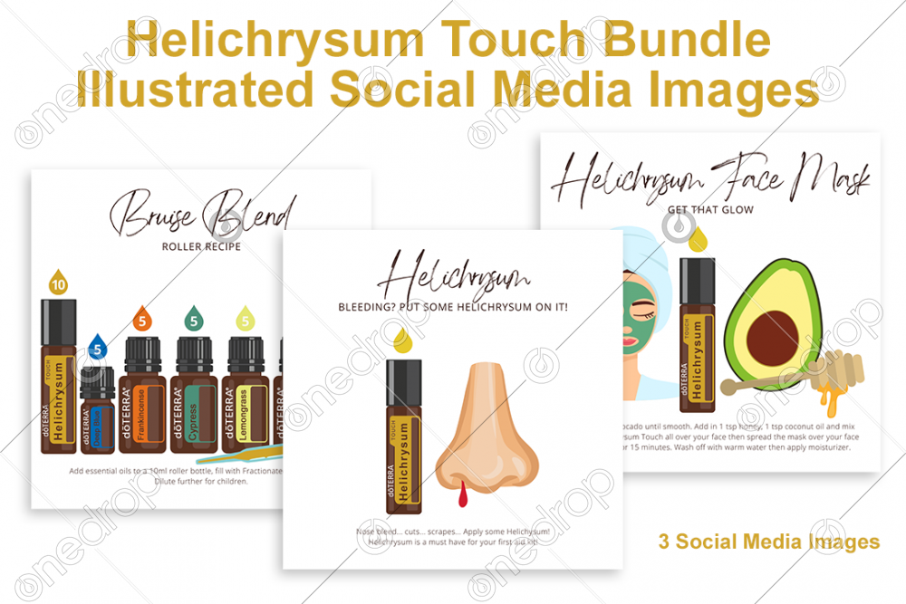 In this bundle, you will find 3 illustrated social media images for Helichrysum Touch! Post together or individually over time.
