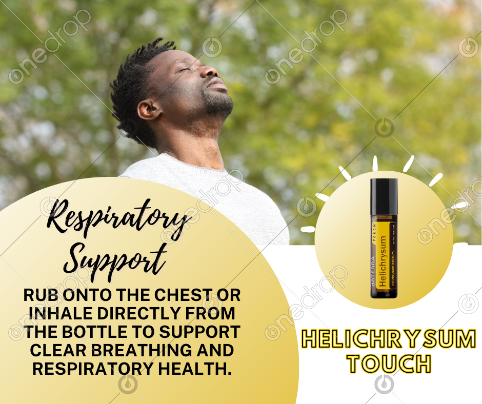 So let Helichrysum Touch be your companion on the path to respiratory wellness and vitality. With its uplifting energy and soothing presence, you'll find yourself breathing easy and soaring high, reaching new heights of health and happiness with each and every breath.