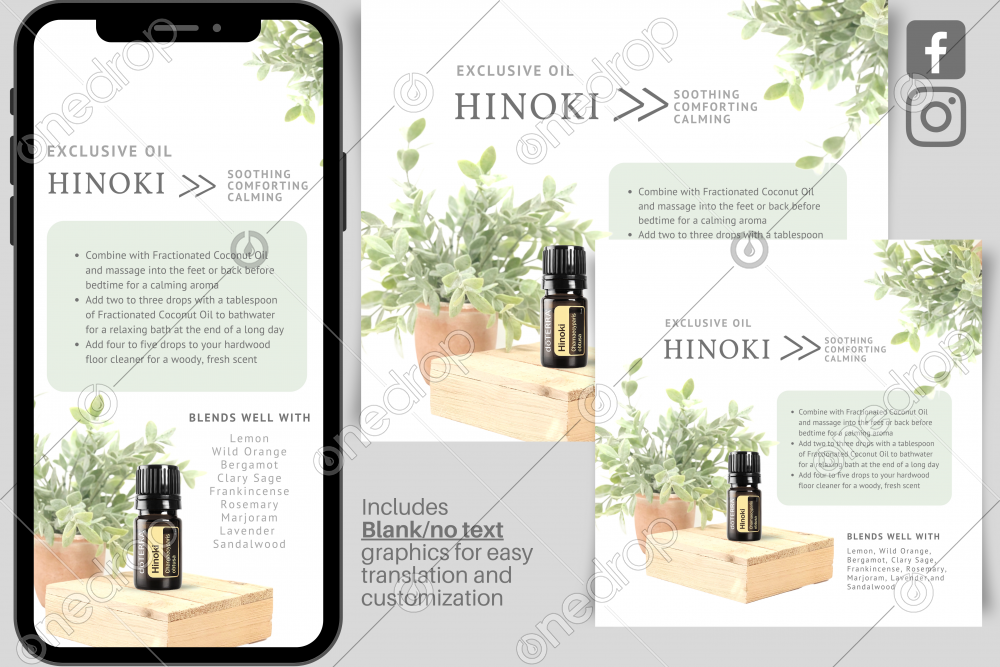 - lists oils that blend well with Hinoki- Lemon, Wild Orange, Bergamot, Clary Sage, Frankincense, Rosemary, Marjoram, Lavender and Sandalwood