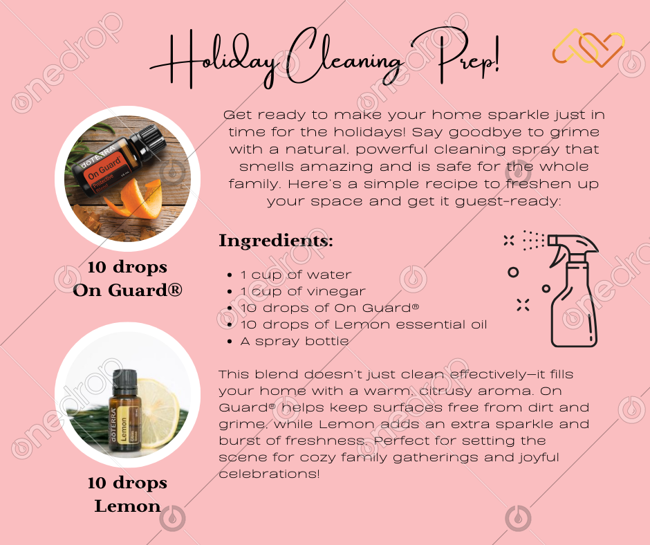 🧼✨ Holiday Cleaning Prep! ✨🧼 Get ready to make your home sparkle just in time for the holidays! 🎄✨ Say goodbye to grime with a natural, powerful cleaning spray that smells amazing and is safe for the whole family. Here’s a simple recipe to freshen up your space and get it guest-ready: