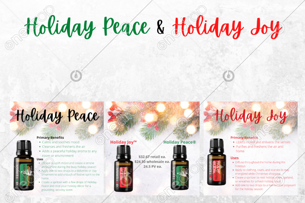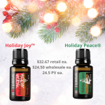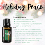 Square images for Instagram and Facebook posts with Holiday Joy and Holiday Peace primary benefits and uses