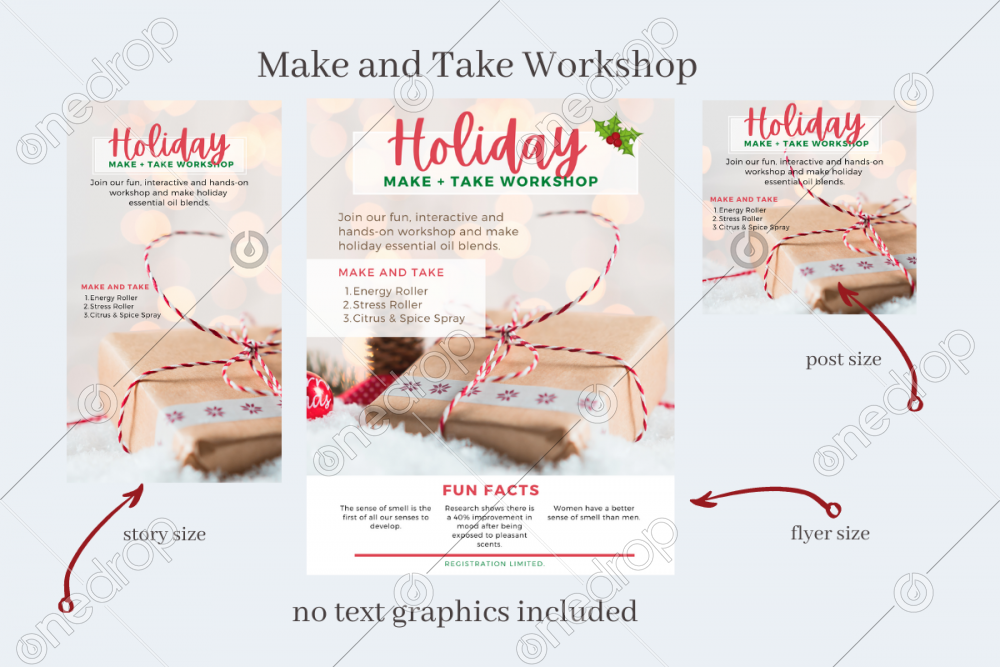 Holiday Make and Take set with a flyer, social post size and story size graphic to promote your workshop.