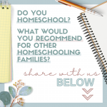 - Asks the following question: Do you homeschool? What would you recommend for other homeschooling families?