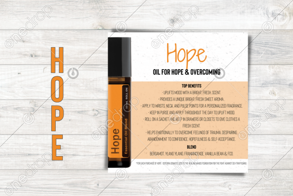 Square infographic with benefits & usage tips of Hope Essential Oil.