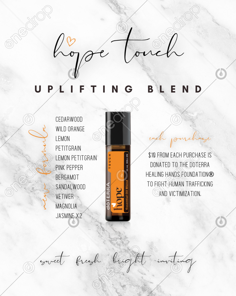 - Graphics spotlighting the benefits of the new Hope Touch Uplighting Blend.