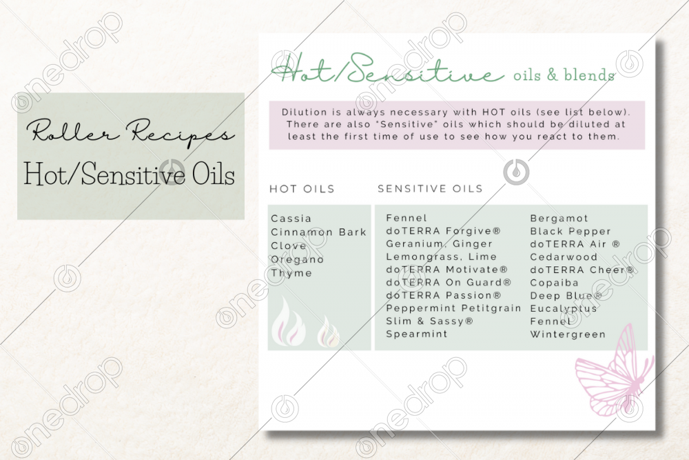 A single, square orientation download featuring a list of doTERRA's hot & sensitive oils, and the precautions users should take whilst using them.
