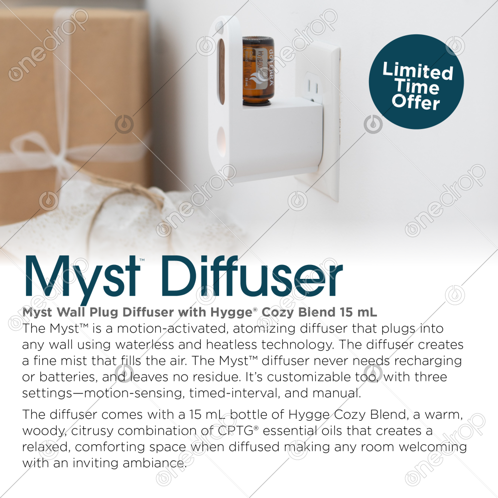 This October get the Hygge® Cozy Blend 15 mL + Myst Wall Plug Diffuser 2.0 Bundle! Available while supplies last