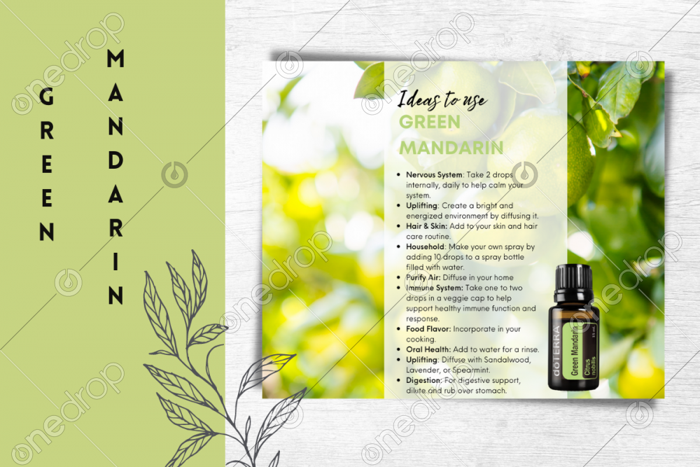 Green Mandarin essential oil is pressed from the unripened fruit of the mandarin tree, while Red Mandarin essential oil comes from a more mature fruit. Internal use of Green Mandarin is known for its soothing properties for the nervous system and can be supportive of healthy digestive function. Limonene, one of the main chemical components of Green Mandarin essential oil, is renowned for its surface cleansing properties. Limonene may also help support cellular function, along with γ-Terpinene. Green Mandarin oil may provide antioxidant support and help support cardiovascular health when taken internally. Create a bright and energized environment while diffusing the sweet, refreshing aroma of Green Mandarin oil throughout your home or workplace.