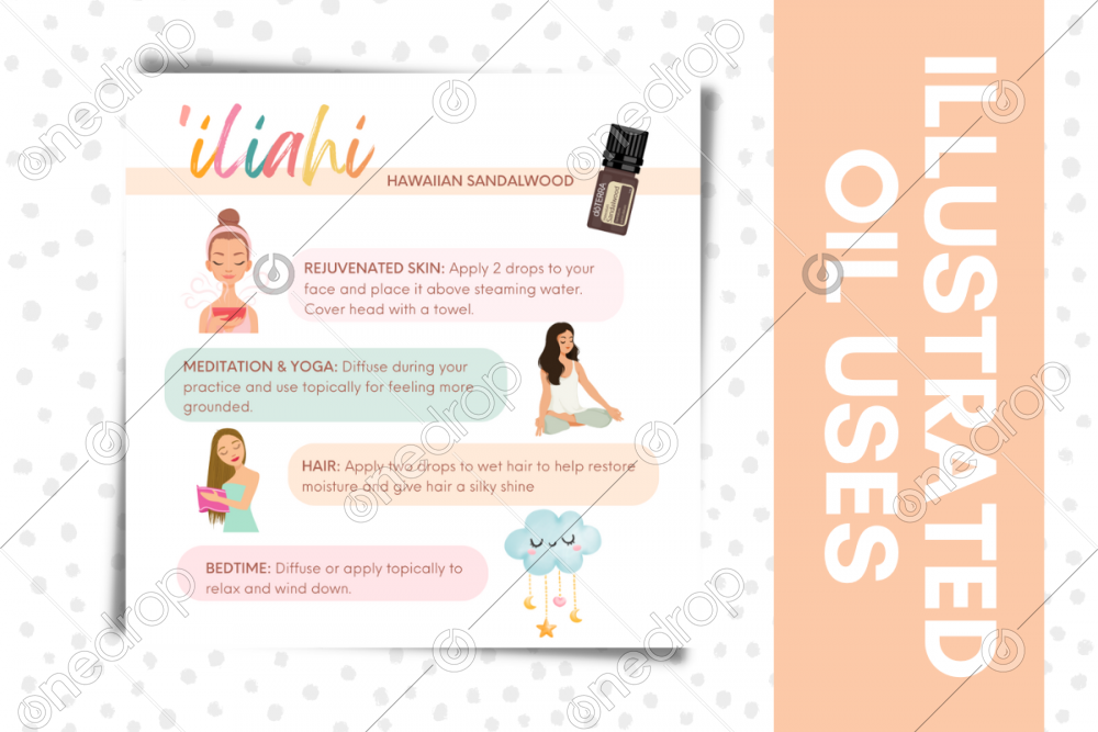 Illustrated 'ILIAHI (Hawaiian Sandalwood) Oil Uses