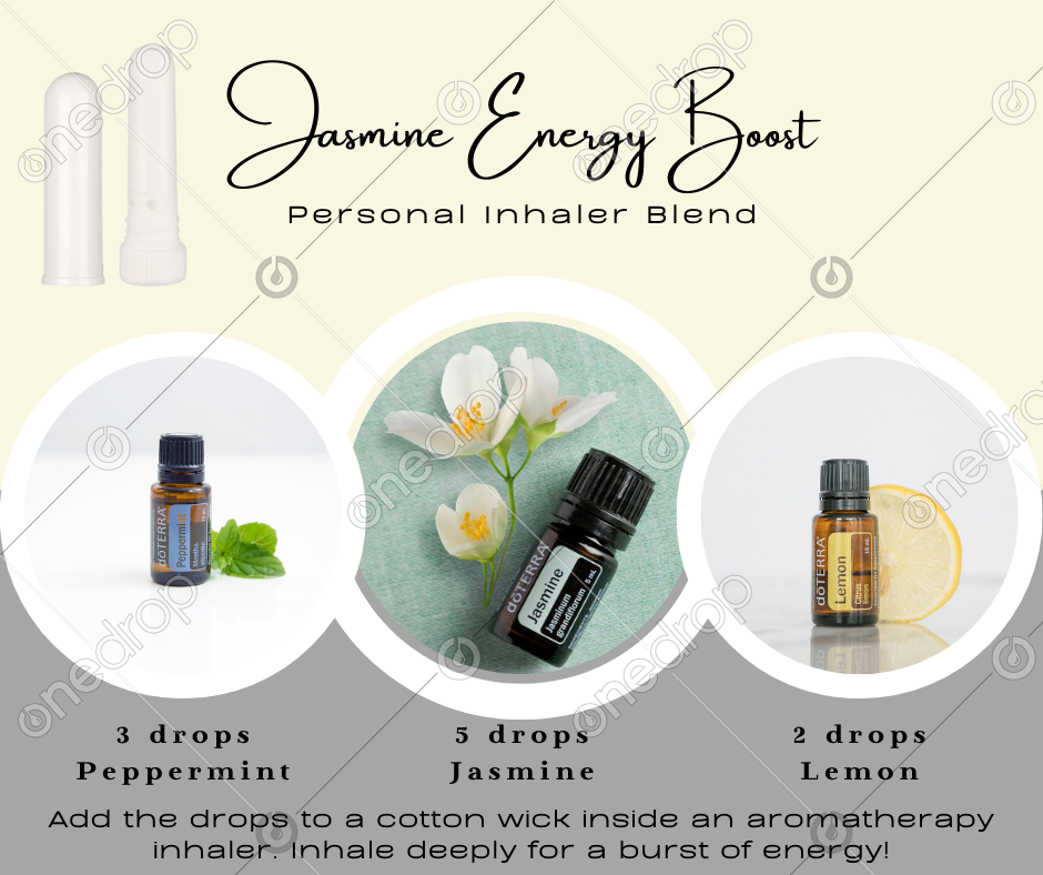 😃 Directions: Add oils to a cotton wick inside a personal inhaler. Inhale deeply for a burst of energy!