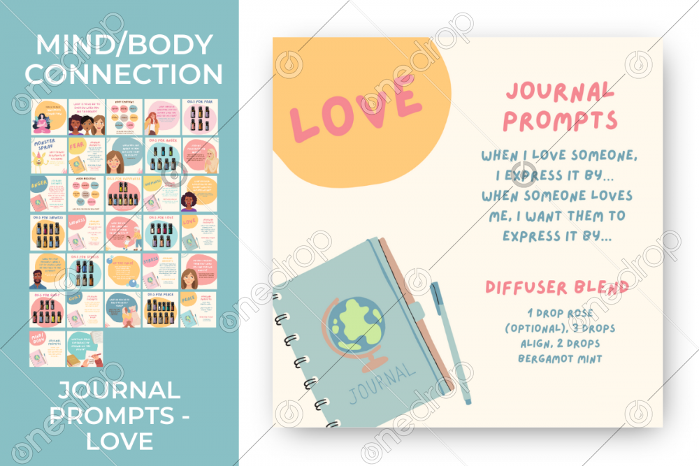 This graphic is part of the Mind/Body Connection Collection. The Collection highlights 8 emotions with journal prompts, suggested essential oils for support, and a understanding of each emotion. (The Done-For-You-Copy is downloaded separately). All the graphics for the collection are below!