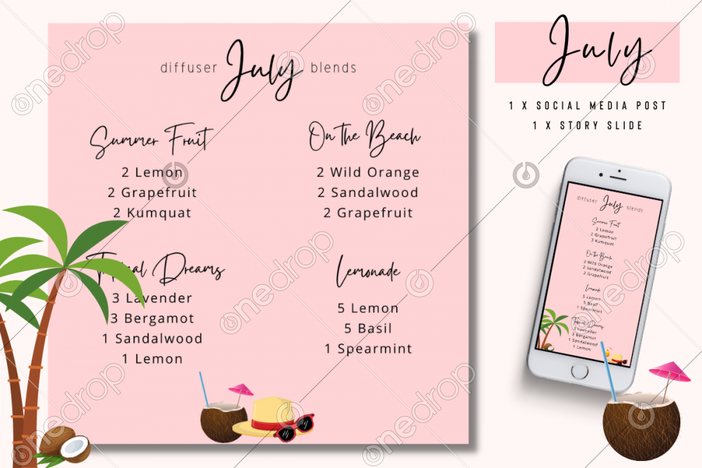 A fun, summer themed social media bundle featuring the below 4 diffuser blends for July: