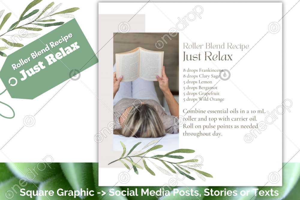 Top with carrier oil and roll on pulse points as needed throughout the day. When you apply your Relax blend also take a moment to focus on some deep breathing. That will help too!