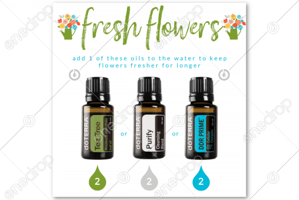 Keep flower fresh for longer by adding 2-3 drops of one of these oils to the flower water - Tea Tree, Purify, or DDR Prime®. It works!