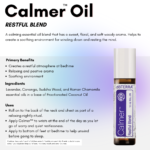 Calmer™ Restful Blend promotes a serene atmosphere, allowing bedtime to be a peaceful and welcomed experience. Rolling Calmer onto the bottoms of feet and the back of the neck helps create a calming, relaxing environment when tensions are high.
