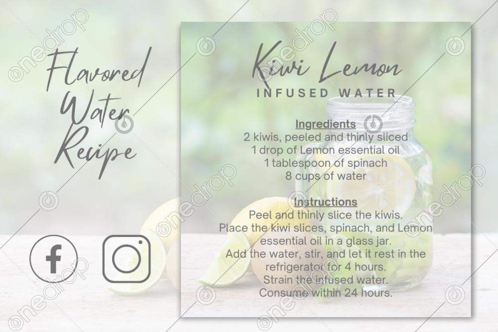 Kickstart your day with a burst of vitamins and hydration! This Kiwi Lemon Infused Water with Spinach is packed with Vitamin C, K, and iron. Plus, a drop of Lemon essential oil adds a refreshing touch.