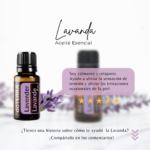 Post con breve descripción de los beneficios de la lavanda y para invitar a clientes a compartir su experiencia con el Aceite esencial de Lavanda de dōterra