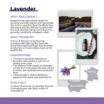 This graphic features images and text about the sourcing and harvesting of Lavender Essential Oil.