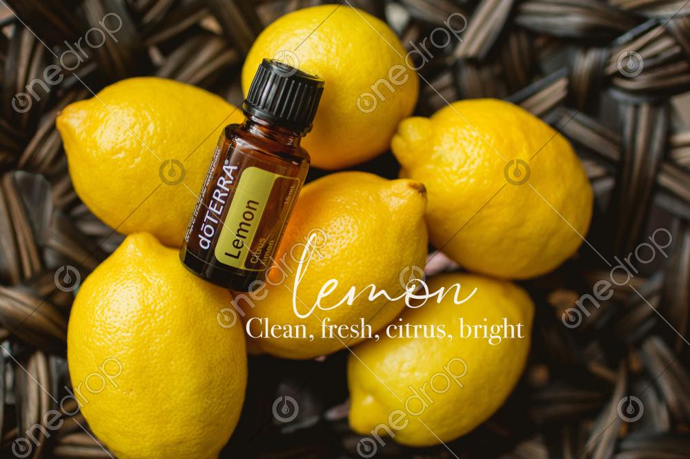 15mL bottle of Lemon oil shown with lemons