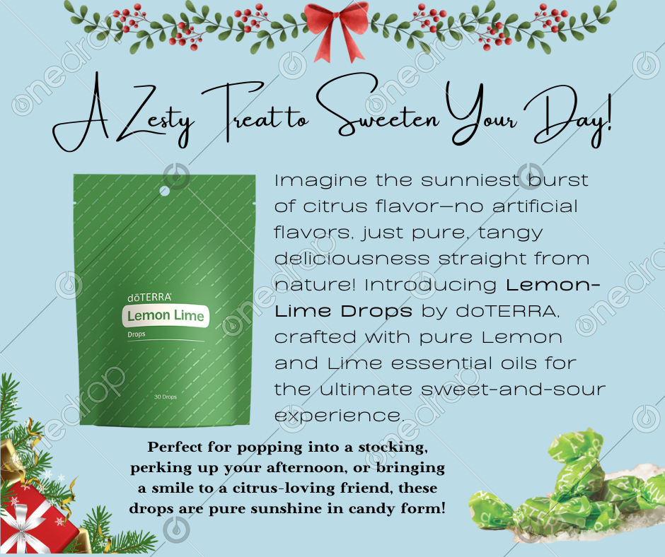 Imagine the sunniest burst of citrus flavor—no artificial flavors, just pure, tangy deliciousness straight from nature! 🌞 Introducing Lemon-Lime Drops by doTERRA, crafted with pure Lemon and Lime essential oils for the ultimate sweet-and-sour experience.
