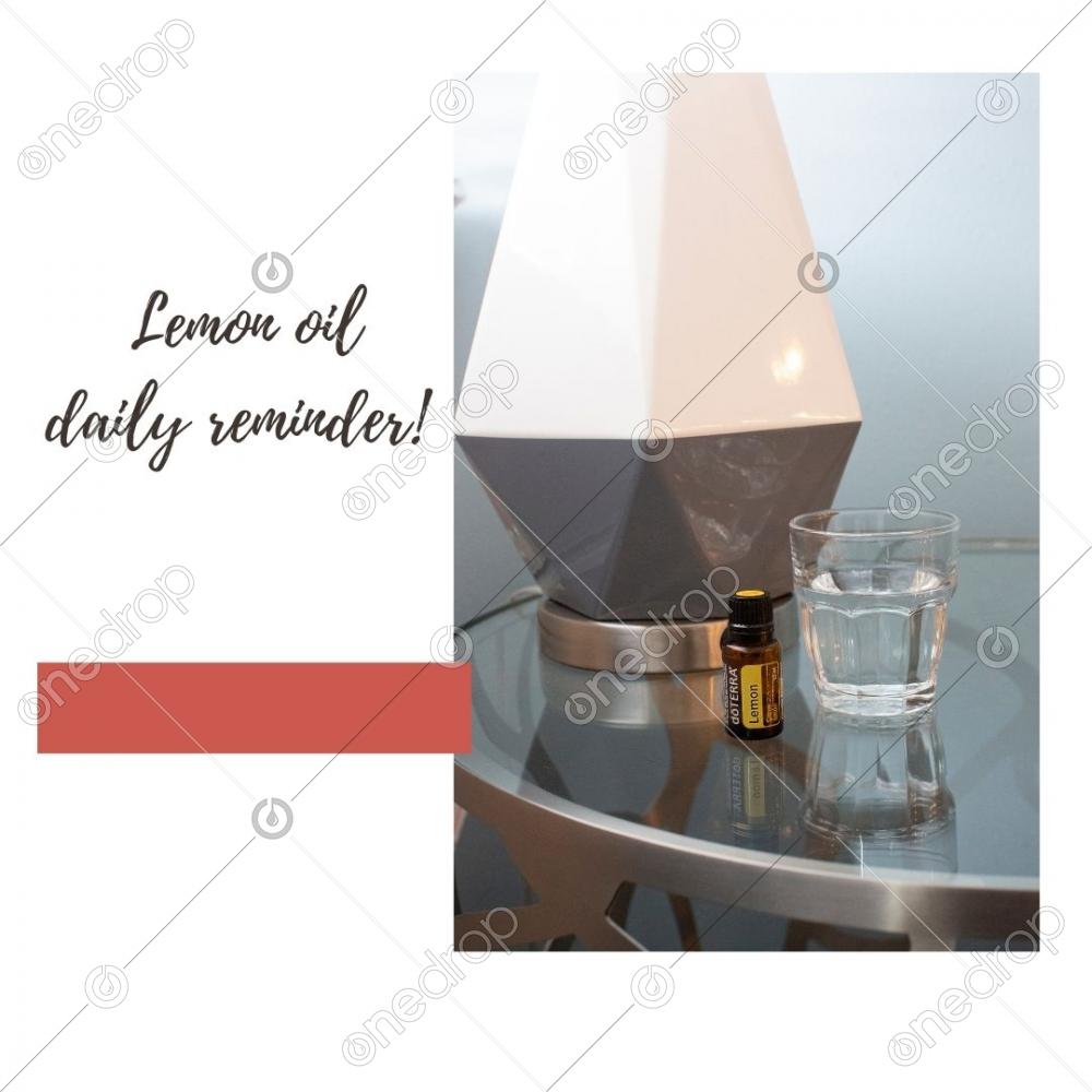 Lemon oil on a glass table with a glass of water and geometric lamp. Clean and simple, remind your customers to use Lemon oil every day!