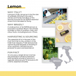 This graphic features images and text about the sourcing and harvesting of Lemon Essential Oil.
