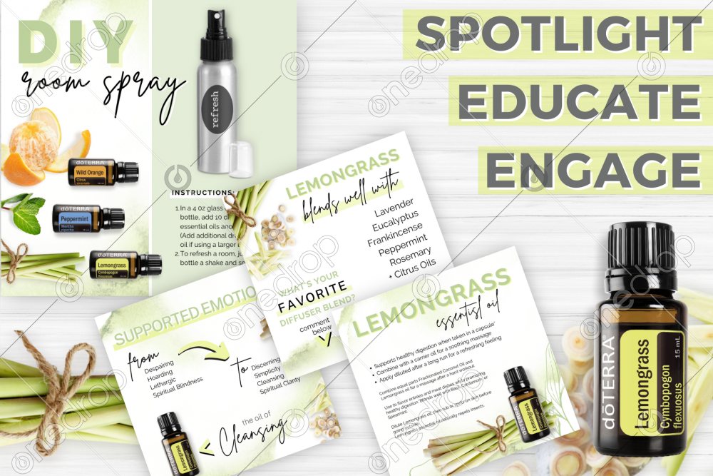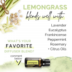- Lists oils that blend well with Lemongrass + asks the following question; What is your favorite diffuser blend? (Consider adding a giveaway for those who comment to help increase participation and commenting)