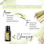 - Mentions that Lemongrass is know as the oil of cleansing + mentions the supported emotions