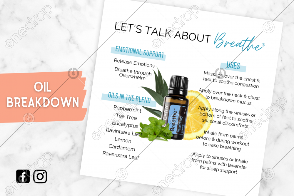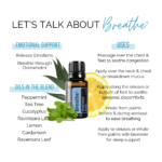 An oil breakdown for Breathe. Includes oil uses, emotional benefits as well as what is inside.