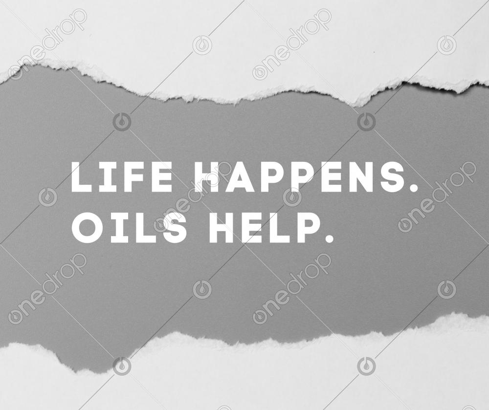 "Life happens. Oils help." Witty quote graphic.
