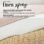 Add witch hazel, water, and essential oil into a 2 oz spray bottle and spray linens!