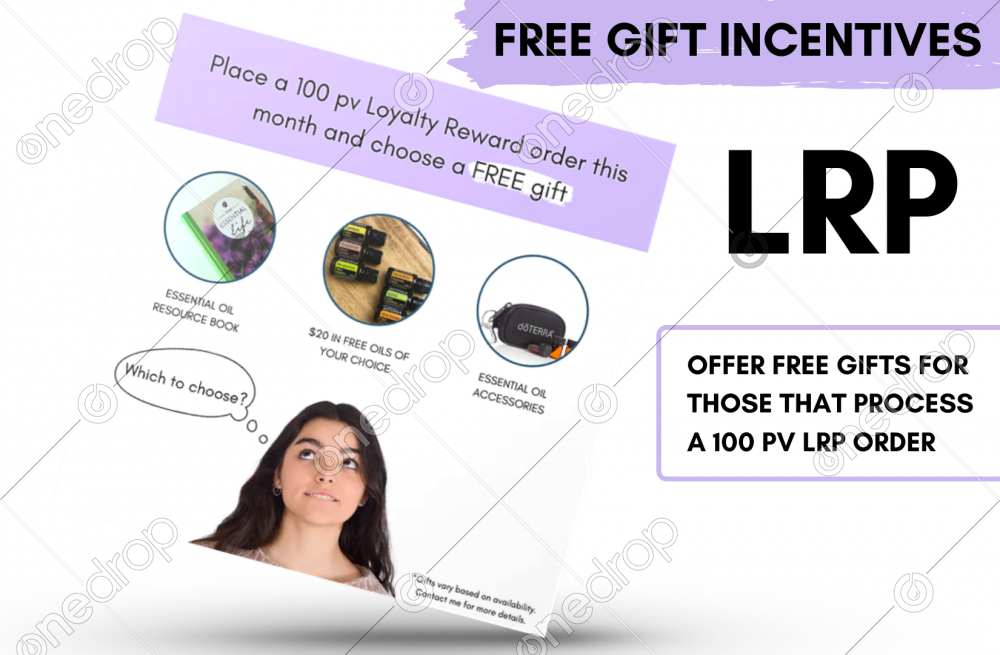 Offer free gifts for those that process their first 100pv LRP order. A great graphic to text or email to encourage customers to get in their LRP order.